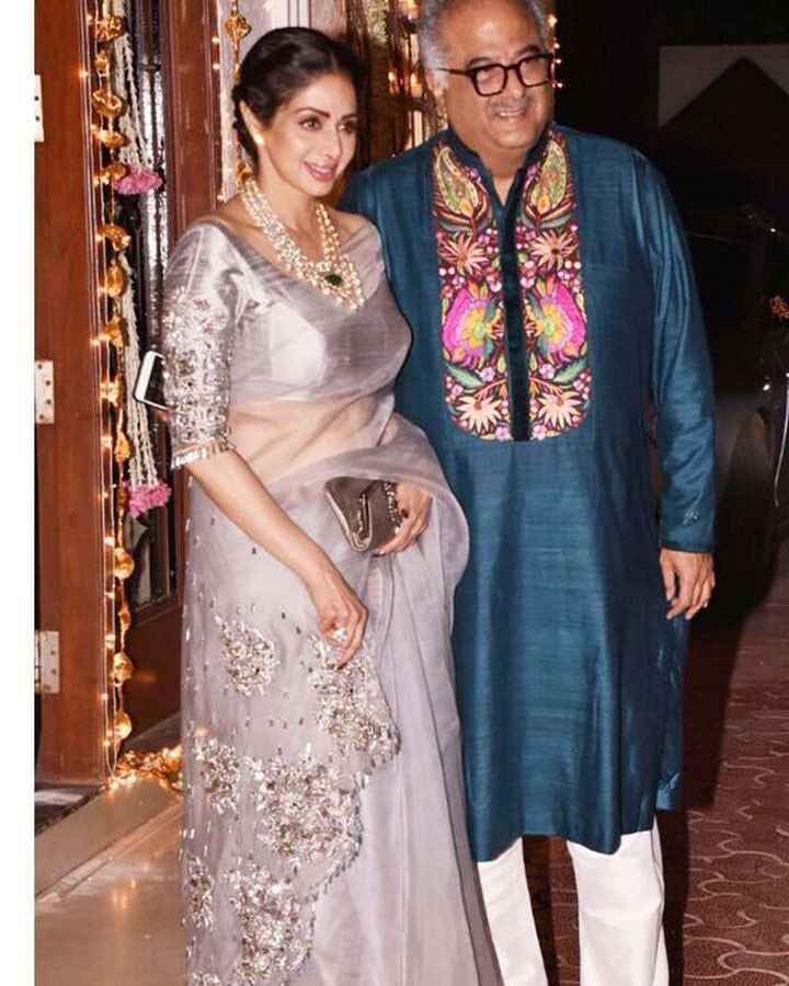 2/6Looking stunning in a saree, Sridevi complemented her husband as they dress up in ethnic attires (Image Source:Instagram/sridevi.kapoor)