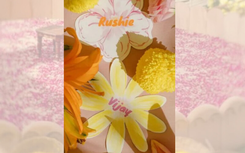 In another Story, Vijay shared a close-up of personalised floral name placards. One flower-shaped card reads “Rushie” —nickname for Rashmika — while the other reads “Vijay.” Placed among fresh lilies, roses and marigolds, the décor detail adds an intimate, romantic element to the traditional ceremony.